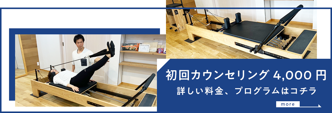 簡単なヒアリングと姿勢の評価をした後、ピラティスマシンを使い、基本的なエクササイズとストレッチを行います。